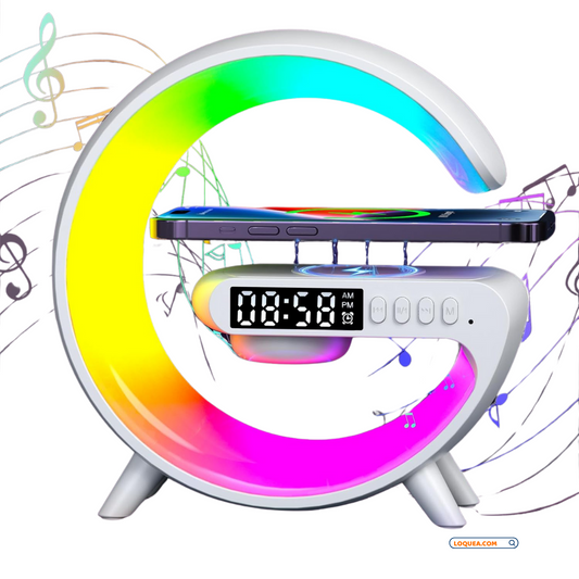 Lámpara Atmosférica LED en Forma de "G" Cargador Inalámbrico y Bocina Bluetooth